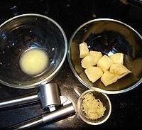 1.把老姜洗净切块,用压蒜器压出姜汁,也可以用搅拌器搅拌出姜汁,或者用捣蒜缸之类的工具榨出姜汁。把榨好的姜汁装碗,每碗2-3勺,待用