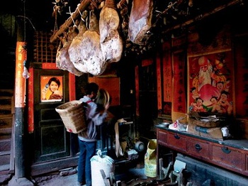 “万驮盐巴千石米,百货流通十土奇。行商坐贾交流密,芒铃时鸣驿道里。”这曾是每个诺邓人都能骄傲说出来的句子。当年,马帮云集诺邓,热闹非凡,去时驮盐,回时驮米,还有现在出名的诺邓火腿、猪肝糁等土特产也被顺带运走。成也盐业,败也盐业。为了熬盐,过度的砍伐已使周边尽是童山,只有村里与岁月同老的大夫第、盐务署、龙王庙、五课提举司剥落光鲜,告诉你一个始于汉代的盐业的没落传奇。