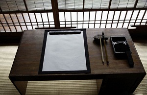 前面已经提过文房四宝的特性及选取使用之法,现在进一步来将其互相配合,以求发挥功能的极限。古人常以健毫笔书写在笺纸上,以柔性的宣纸写也行,所以健毫笔可任意配纸。而弱吸墨的纸可以用健毫笔书写,使用柔毫笔亦可,所以弱吸墨纸类也可任意配笔。这种配法是纸与笔相合的原则,而柔毫笔与强吸墨的纸较为特殊的分法则如下: