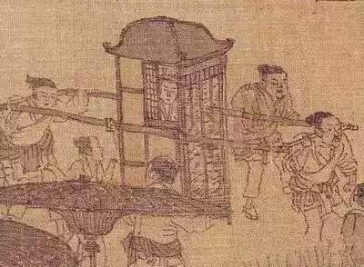 一乘轿子停在酒楼前,一位女子掀开轿帘,成为画中难得一见的女性。《清明上河图》中的男女比例为80比1
