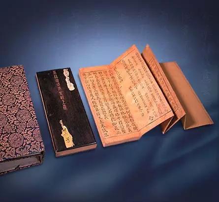 装盒,帛书的书叶面积基本相同,呈长方形,写好以后,按顺序将书叶排列好,然后装进一个方盒中。这种装帧的意义,在于完全脱离了竹木简编连成册、卷起收藏的传统习惯,为中国古籍逐渐向册叶制过渡,创造了条件。