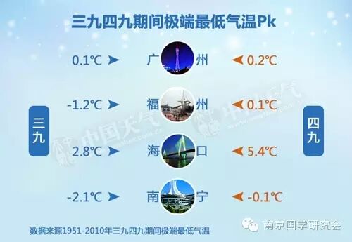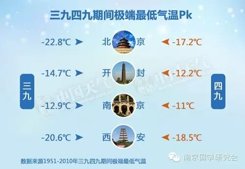 从平均气温来看,这四个城市的四九似乎对应着气温更低,虽然这算不上冷,但是在华南,冷在三九的说法并不成立。不过,从极端最低气温来看,这四个城市全都在三九出现更冷的低温。南京国学研究会 官方网址:http://www.njgx.org/