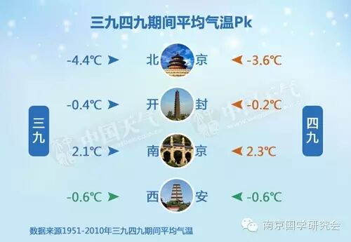 根据1951年到2010年60年的数据,这四个城市三九、四九期间的平均气温和极端最低气温PK战果如下: